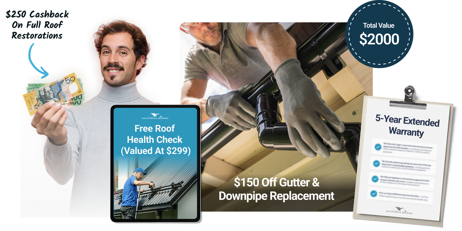 The average Saluni Metal Roofing customer eliminates repeat leak repairs, avoids $56,000+ in hidden water damage, and enjoys a leak-free home backed by a 50-Year Guarantee - all without dealing with unreliable tradies or surprise costs.